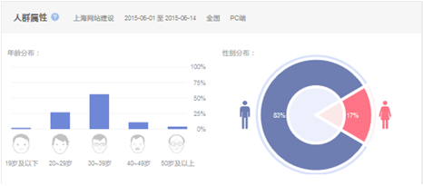 人群畫像也比較好理解。一是顯示各區域對關鍵詞的關注度,在就是關注關鍵詞的性別分布。