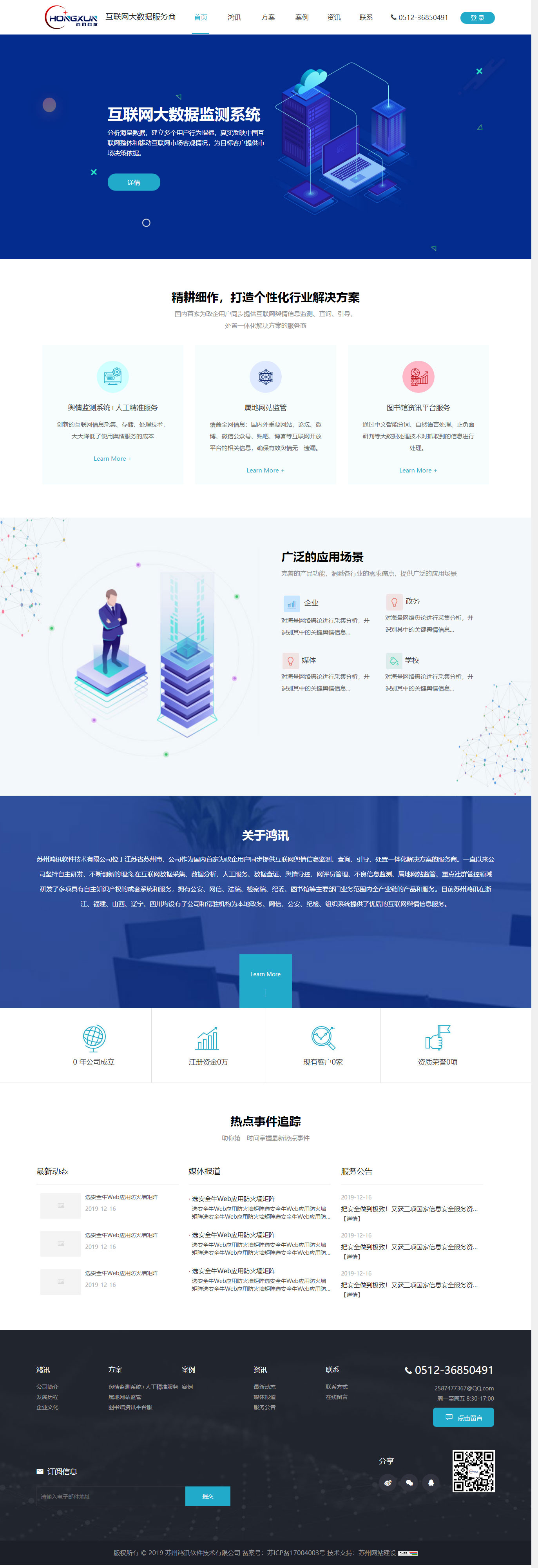 蘇州鴻訊軟件技術有限公司位于江蘇省蘇州市,公司作為國內首家為政企用戶同步提供互聯網輿情信息監測、查詢、引導、處置一體化解決方案的服務商。一直以來公司堅持自主研發、不斷創新的理念,在互聯網數據采集、數據分析、人工服務、數據查證、輿情導控、網評員管理、不良信息監測、屬地網站監管、重點社群管控領域研發了多項具有自主知識產權的成套系統和服務,擁有公安、網信、法院、檢察院、紀委、圖書館等主要部門業務范圍內全產業鏈的產品和服務。目前蘇州鴻訊在浙江、福建、山西、遼寧、四川均設有子公司和常駐機構為本地政務、網信、公安、紀檢、組織系統提供了優質的互聯網輿情信息服務。